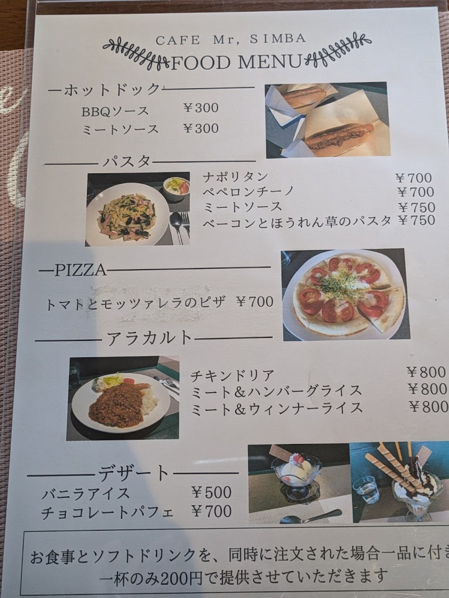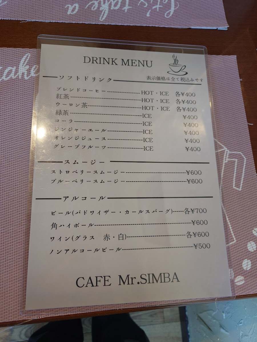 CAFE Mr.SIMBA(カフェ ミスター・シンバ) Menu